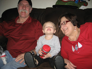 I swear Christian has so much fun playing with Sada dog. She seems to enjoy playing with him too! The other night he kept running down the hall - she followed since he had her toy in his hand. He was laughing hysterically b/c she was chasing him back and forth. So I had to bust out the camera and snap a few shots of the two sillies. =)